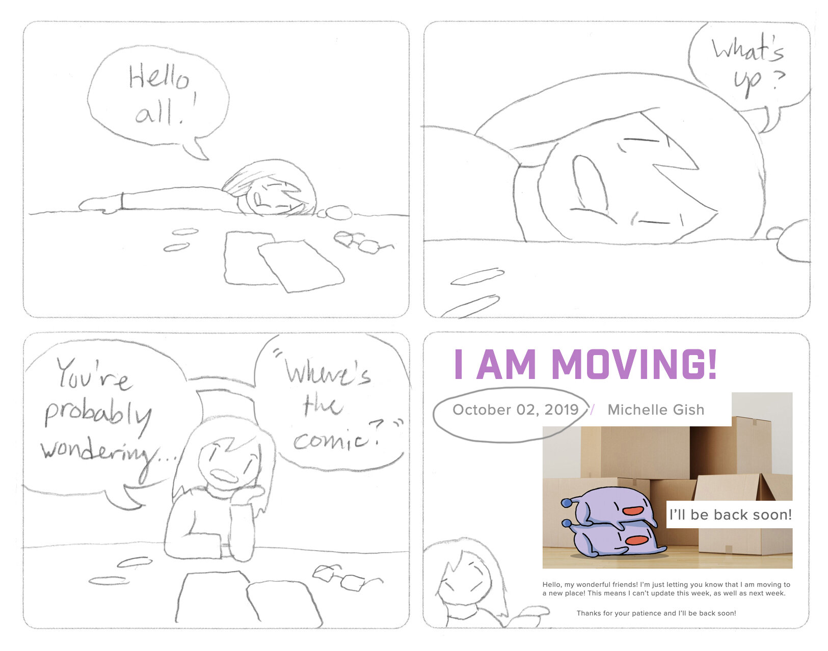 /Hello, my wonderful friends! I’m just letting you know that I am moving to a new place! This means I can’t update this week, as well as next week.